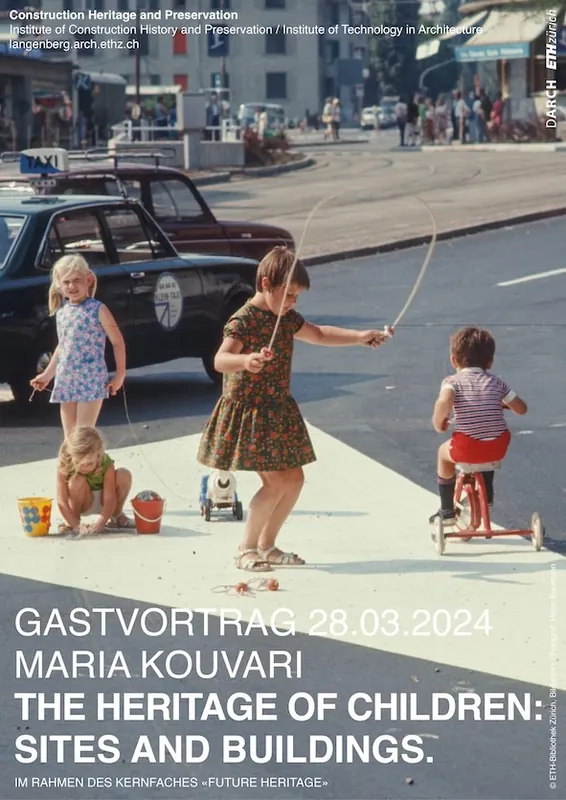 Invited Guest LectureThe Heritage of Children: Sites and Buildings, invited guest lecture, Chair of Construction Heritage and Preservation, Lecture Series “Future Heritage,” ETH Zurich, 28 March 2024.